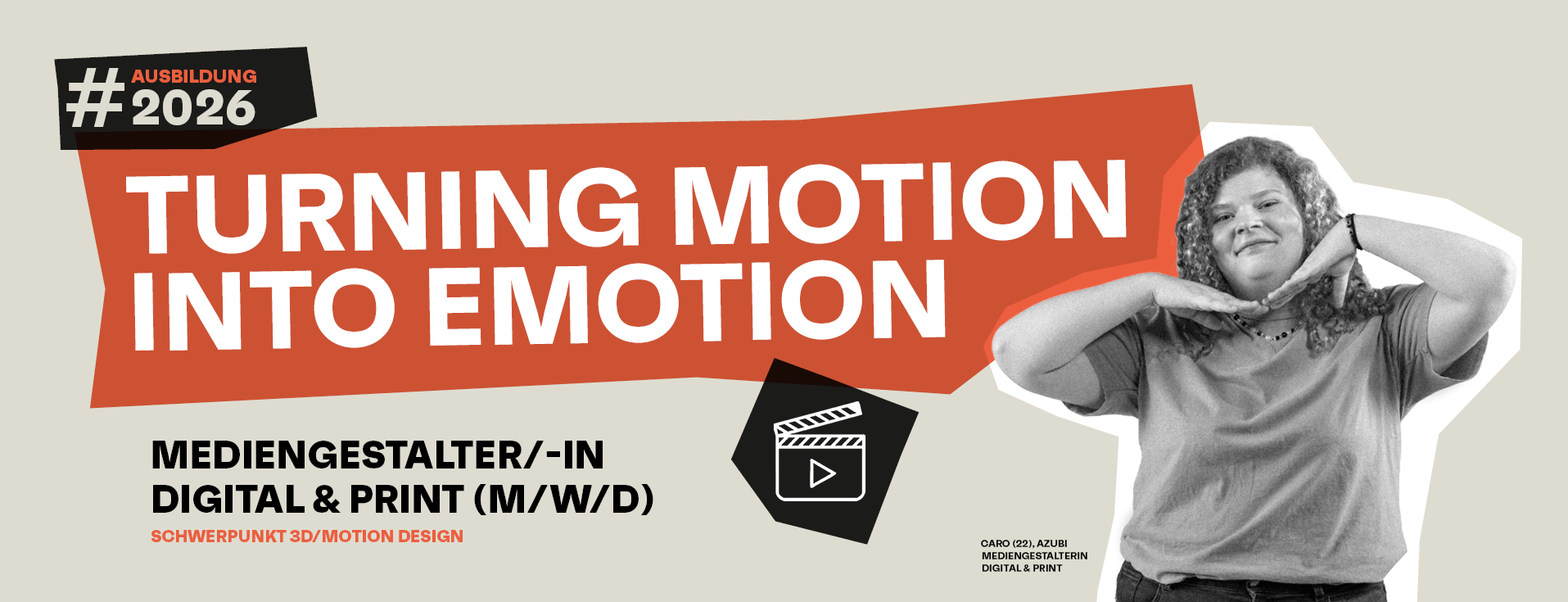 Du willst wissen, wie aus einem Social Media Reel ein Clip wird, den man wirklich zu Ende schaut, und wie 3D dabei zum Leben erwacht? Bei uns lernst du Schritt für Schritt das 1 x 1 gelungener Gestaltung und wie daraus Bewegtbild entsteht, das auffällt und funktioniert. Du layoutest im Handumdrehen erste eigene Projekte, verwirklichst deine Ideen und lernst Motion, Schnitt und 3D von Grund auf. In Azubi-Projekten trainierst du während der Ausbildung die Ausarbeitung ganzer Kampagnen und siehst, wie aus einzelnen Szenen und Assets ein stimmiges Gesamtpaket wird. Dieses Know-how nutzt du täglich in echten Projekten und erlebst, wie dein Bewegtbild am Ende live geht.