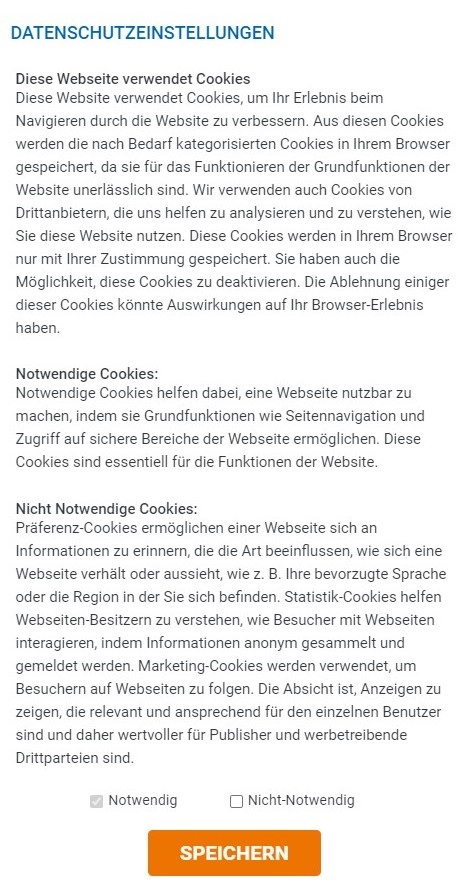 Grob zusammengefasst gibt es 2 Kategorien: notwendige und nicht notwendige Cookies. Das ist wichtig, da der User die Möglichkeit haben sollte, bestimmte Cookies zuzulassen oder abzulehnen. Man kann die Cookies aber auch noch weiter unterscheiden: